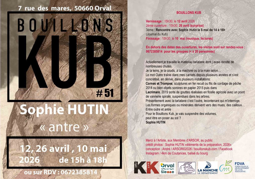 12 Avril Vernissage / 26 Avril / 10 Mai Lecture Finissage Musique